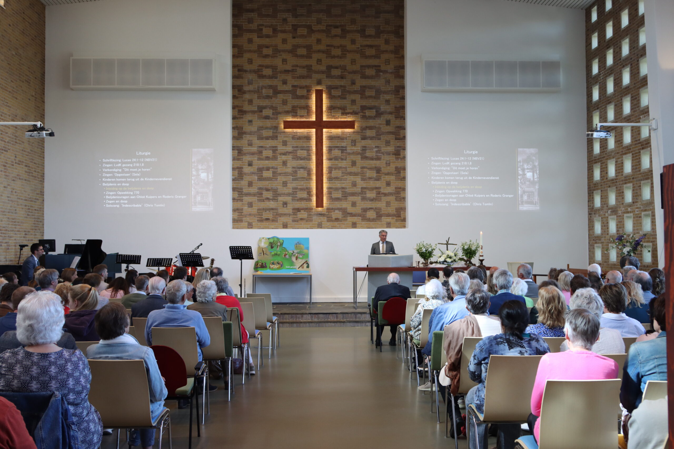 Elke zondag om 10:00 uur begint de Eredienst en om de week is om 16:30 uur nog een tweede kerkdienst.